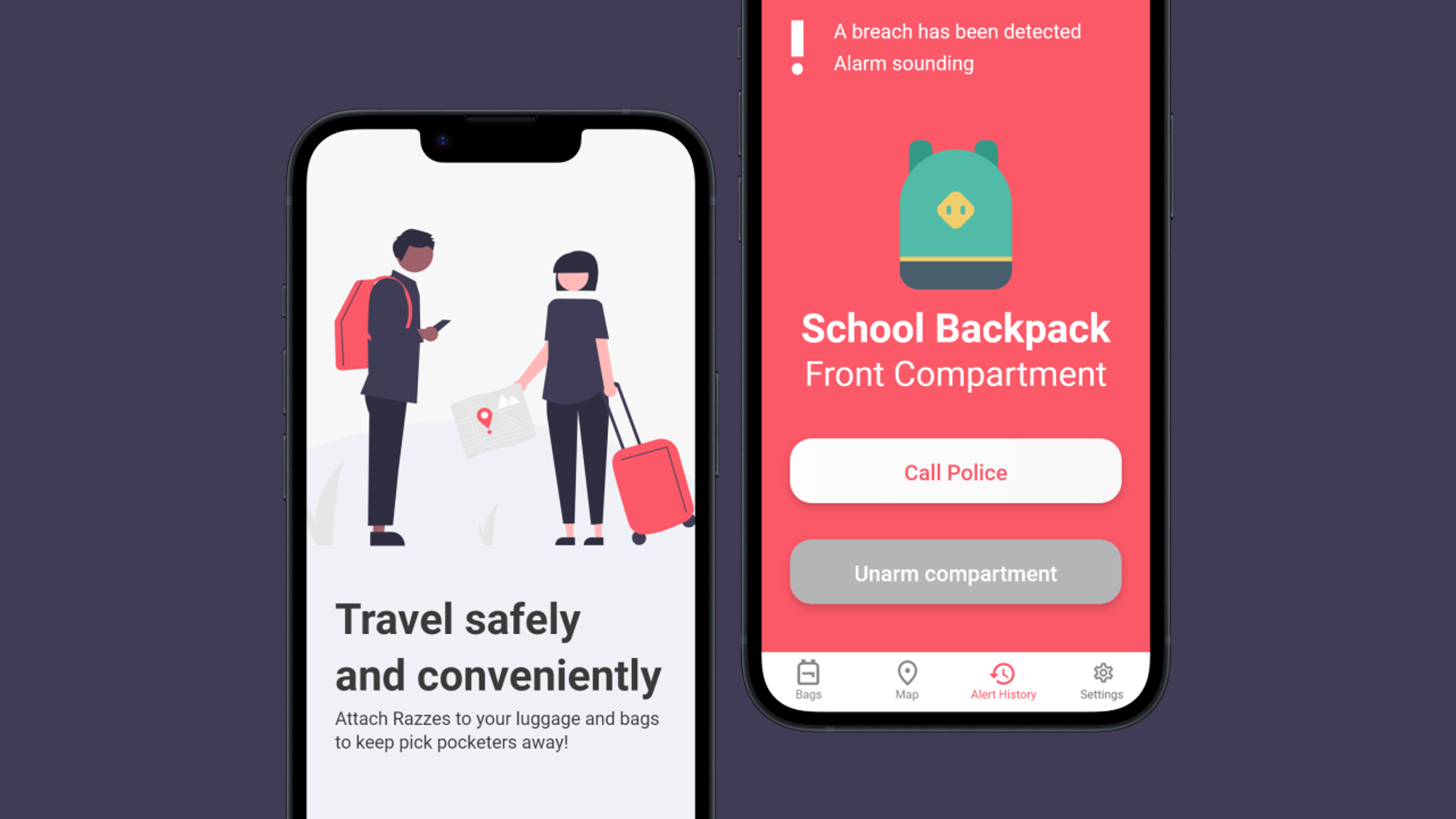 RazzTags prevents pickpocketing by connecting bag zipper tags to a mobile app.